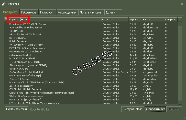 Патч для поиска серверов Counter-Strike 1.6 в интернете
